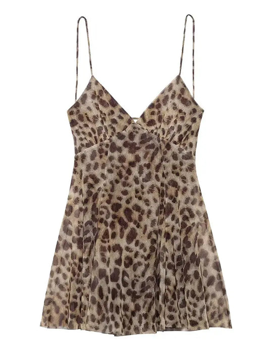 HH Spring Women's Leopard Print Slip Mini Dress 2026 Female Sexy V-Neck Backless Sleeveless Summer Beach Halter Dresses