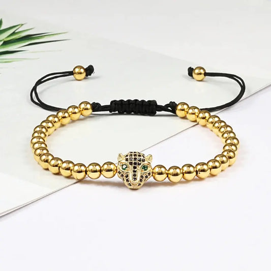 Leopard Head Charm Bracelet 5mm Copper Beads