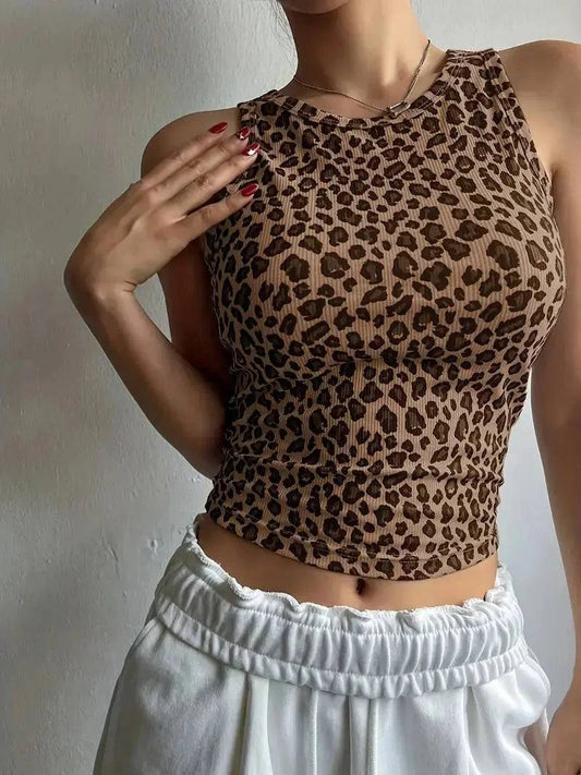 Top Femme Ajusté à Imprimé Léopard – Col Rond, Chic et Tendance