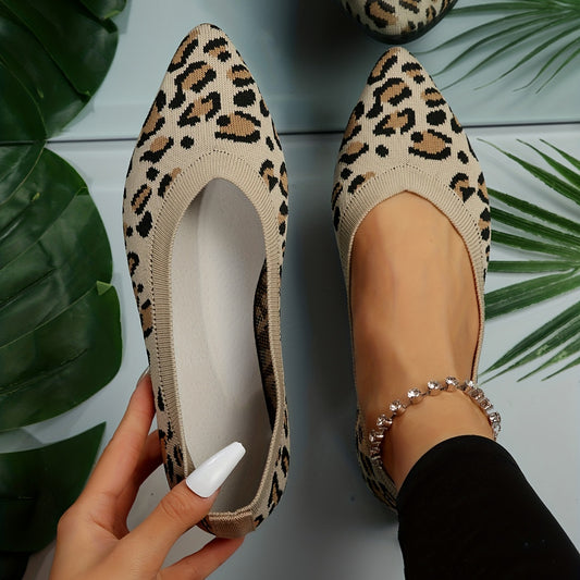 Women's Leopard Print Flat Shoes, Pointed Toe Slip-on Casual Flat Shoes, Women's Lightweight Shoes