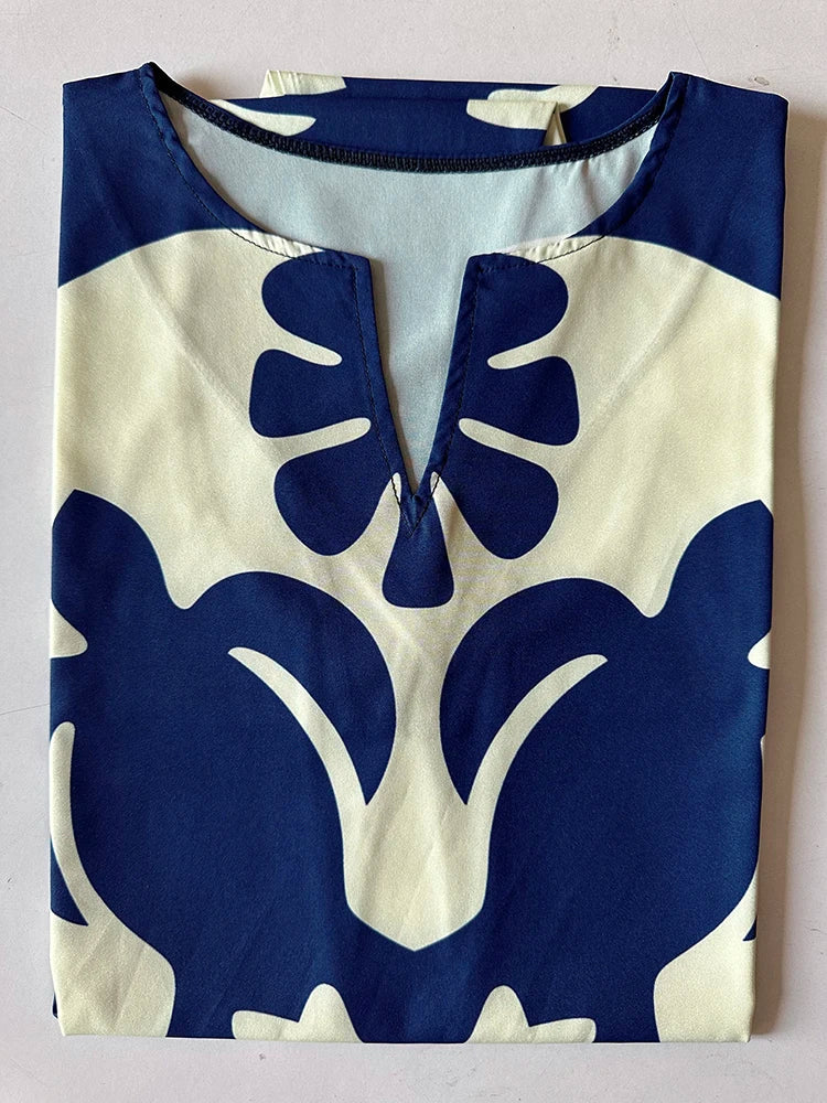 2024 European and American Cross-border WOMEN'S Clothing New Dress V-neck Sleeveless Sexy Printed Large Hem Medium Length Dress