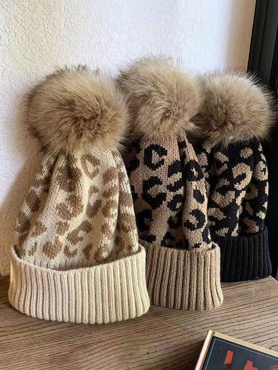 Bonnet en Tricot Léopard Patchwork - Doux et Épais