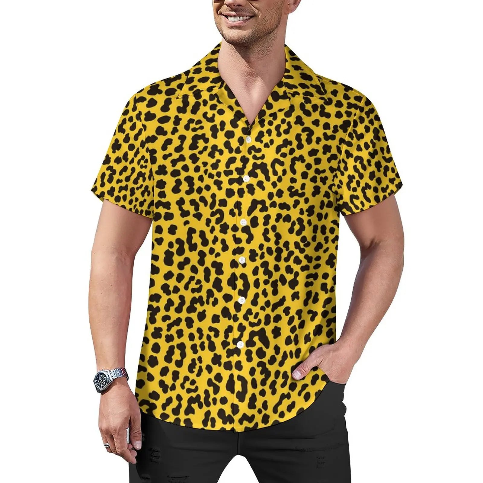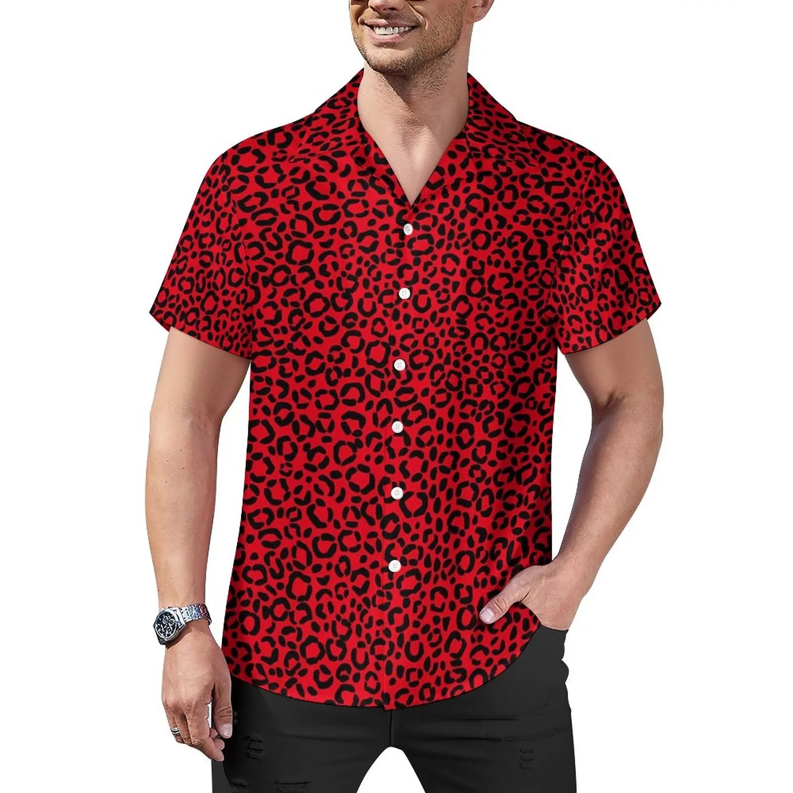 Hawaiian Sexy Red Leopard Spots Men's Shirts For Man