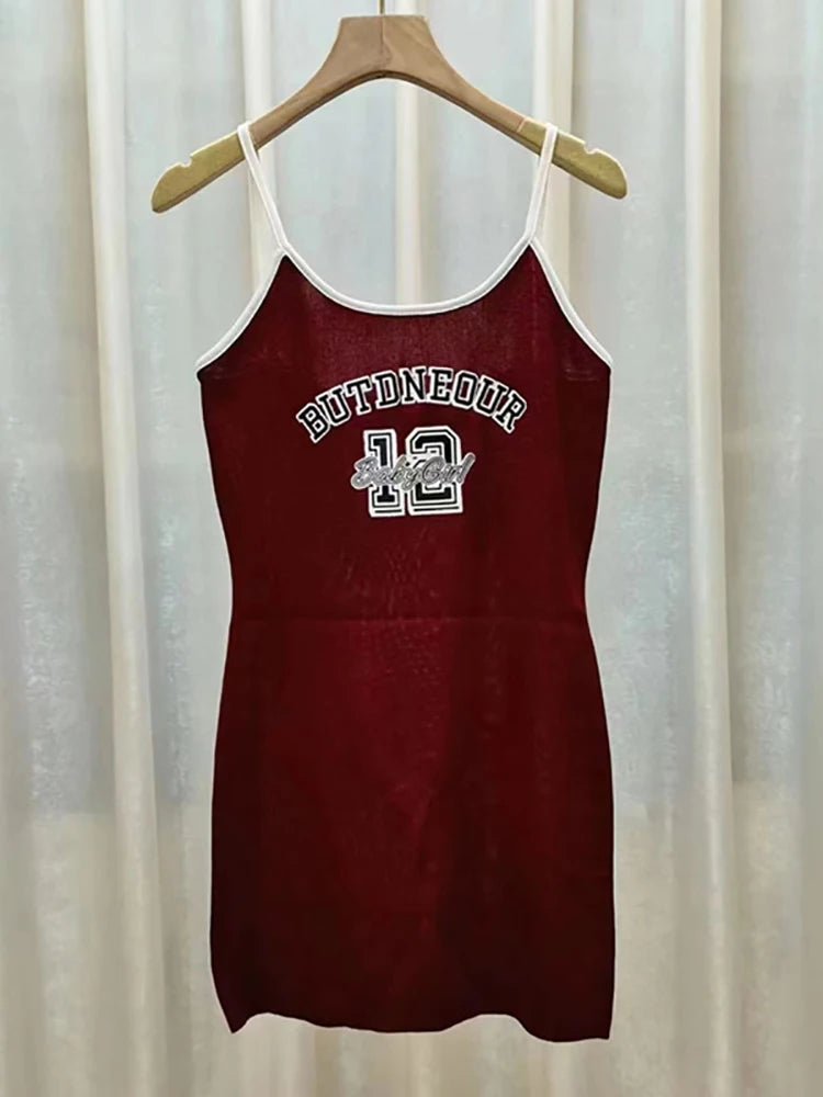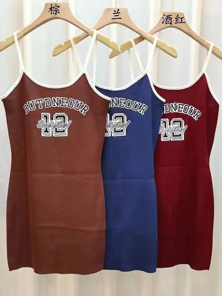 HELIAR Women Fashion Letter Print Sexy Bodycon Dress Spaghetti Strap O-neck Slim Fit Dress Streetwear Summer 2025 One piece