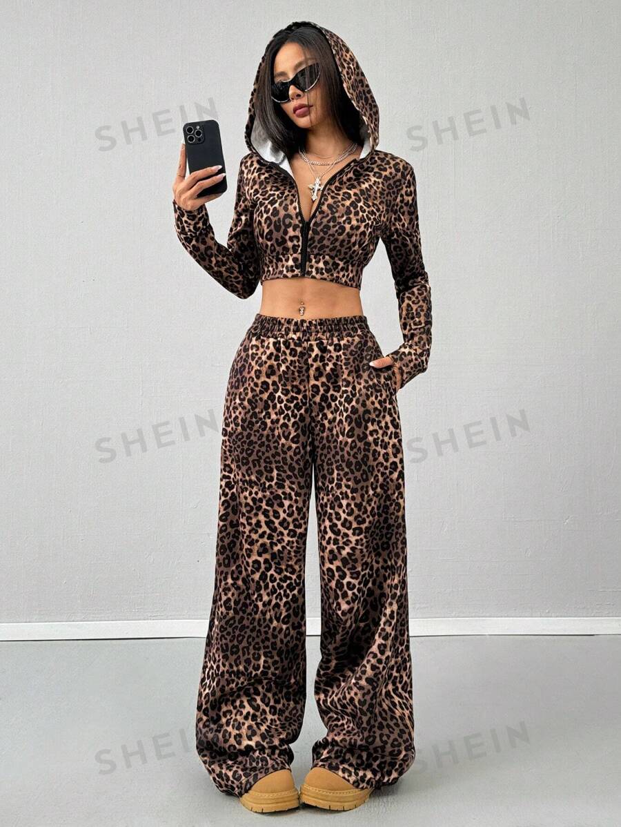 Adoptez un look streetwear audacieux avec cet ensemble pour femme, parfait pour l'automne et l'hiver. Le sweat-shirt à manches longues et le pantalon de survêtement à imprimé léopard offrent une combinaison parfaite de confort et de style. Conçus pour les journées fraîches, ces vêtements tendance vous assurent une protection contre le froid tout en restant modernes. Idéals pour vos moments décontractés ou vos sorties urbaines, cet ensemble ajoutera une touche sauvage à votre garde-robe hivernale.